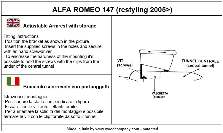 Prodotto progettato e realizzato espressamente per questo modello di auto, non si tratta di un bracciolo universale adattato. Realizzato interamente in Italia da esperti artigiani, utilizzando solamente materiali di alta qualità.