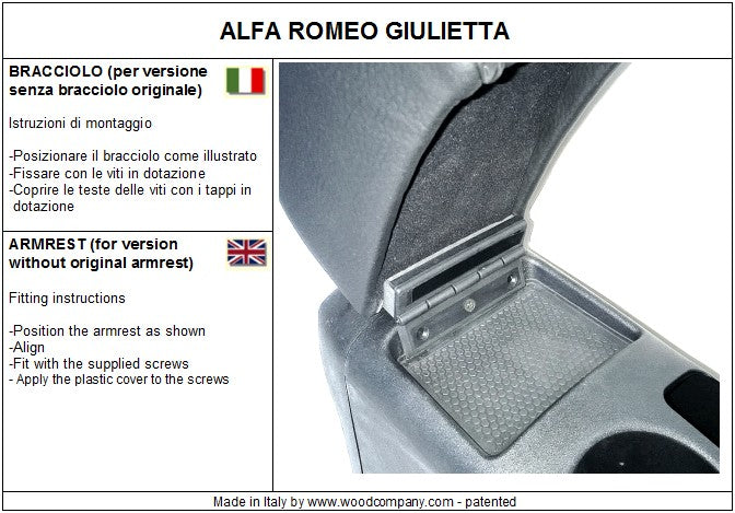 Bracciolo per Alfa Romeo Giulietta (versione standard)