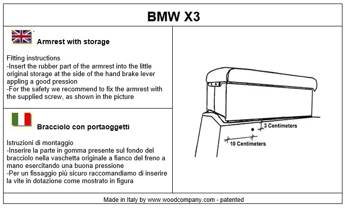 Prodotto progettato e realizzato espressamente per questo modello di auto, non si tratta di un bracciolo universale adattato. Realizzato interamente in Italia da esperti artigiani, utilizzando solamente materiali di alta qualità.