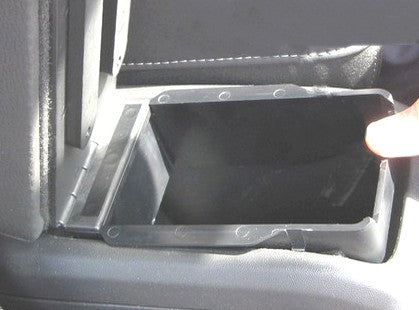 Il bracciolo si solleva (ribaltandosi all’indietro) permettendo l’accesso al portaoggetti originale presente sul tunnel centrale dell’auto. Il grande vantaggio del nostro bracciolo è che appoggia su un’ampia porzione del tunnel centrale, potendo sostenere così il peso del braccio, a differenza dei modelli “a sbalzo” che tendono a rompersi a causa delle sollecitazioni.