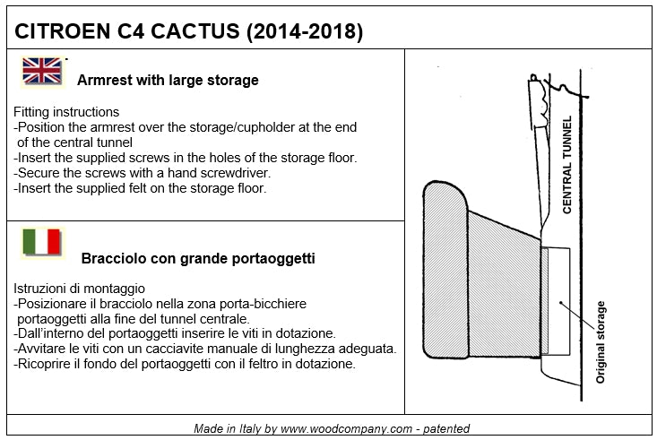 Bracciolo regolabile in lunghezza specifico per Citroen C4 Cactus (2014-2018).