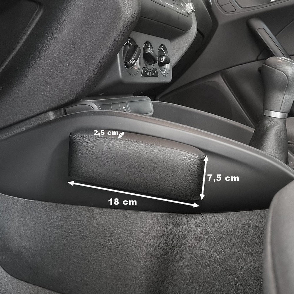 Piccolo cuscino da applicare sul fianco del tunnel centrale per avere un appoggio comodo e morbido per il ginocchio del guidatore e/o del passeggero. Universale, adatto a tutte le auto.