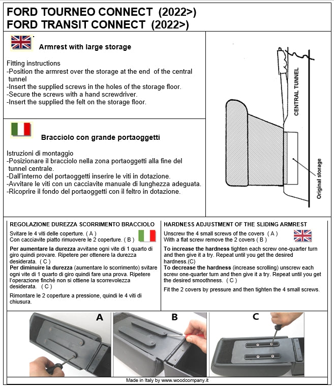 Bracciolo regolabile in lunghezza specifico per Ford TOURNEO CONNECT (2022>).