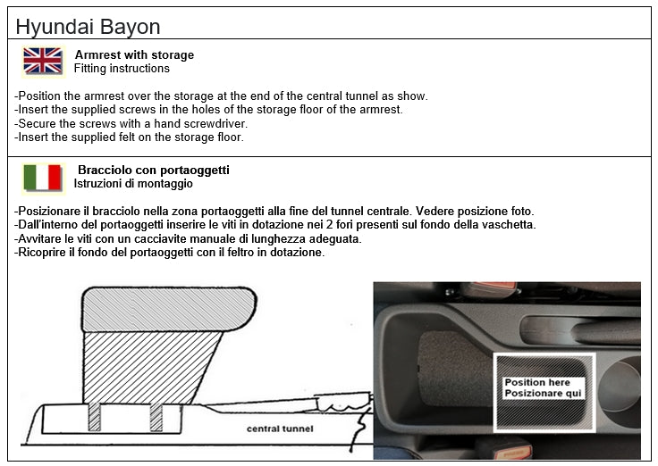 Bracciolo regolabile in lunghezza specifico per Hyundai Bayon.