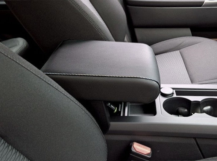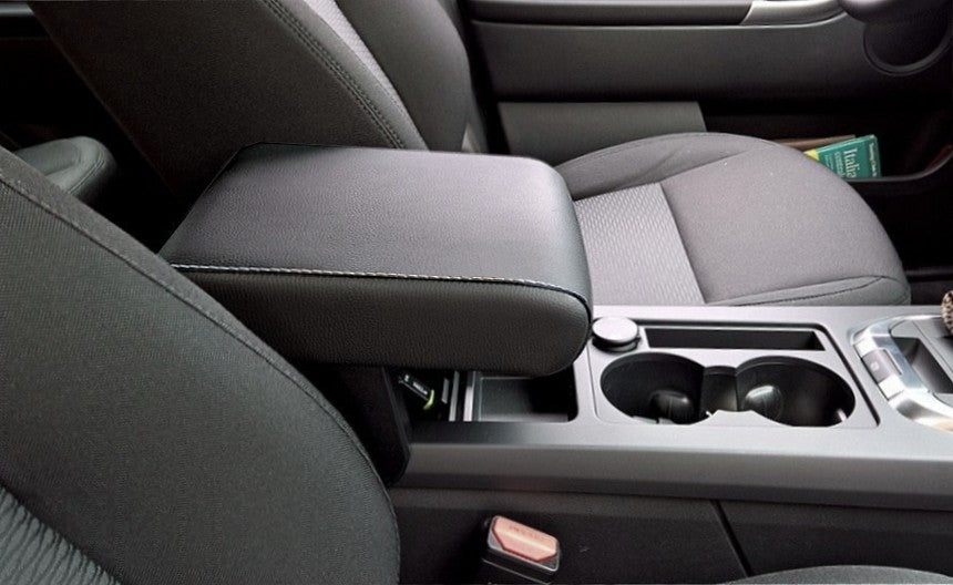 Il bracciolo si solleva (ribaltandosi all’indietro) permettendo l’accesso al portaoggetti originale presente sul tunnel centrale dell’auto.