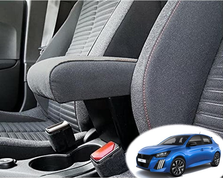 Bracciolo regolabile in lunghezza specifico per Peugeot 208 (03/2019>) con installazione in “PUNTI ORIGINALI” (utilizzando punti di fissaggio già presenti sul tunnel centrale, evitando quindi di danneggiarlo praticando nuovi fori.