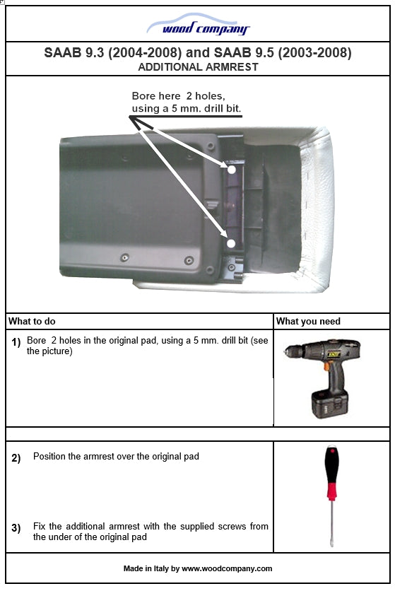 Bracciolo addizionale specifico per Saab 9.5 (1999-2008).