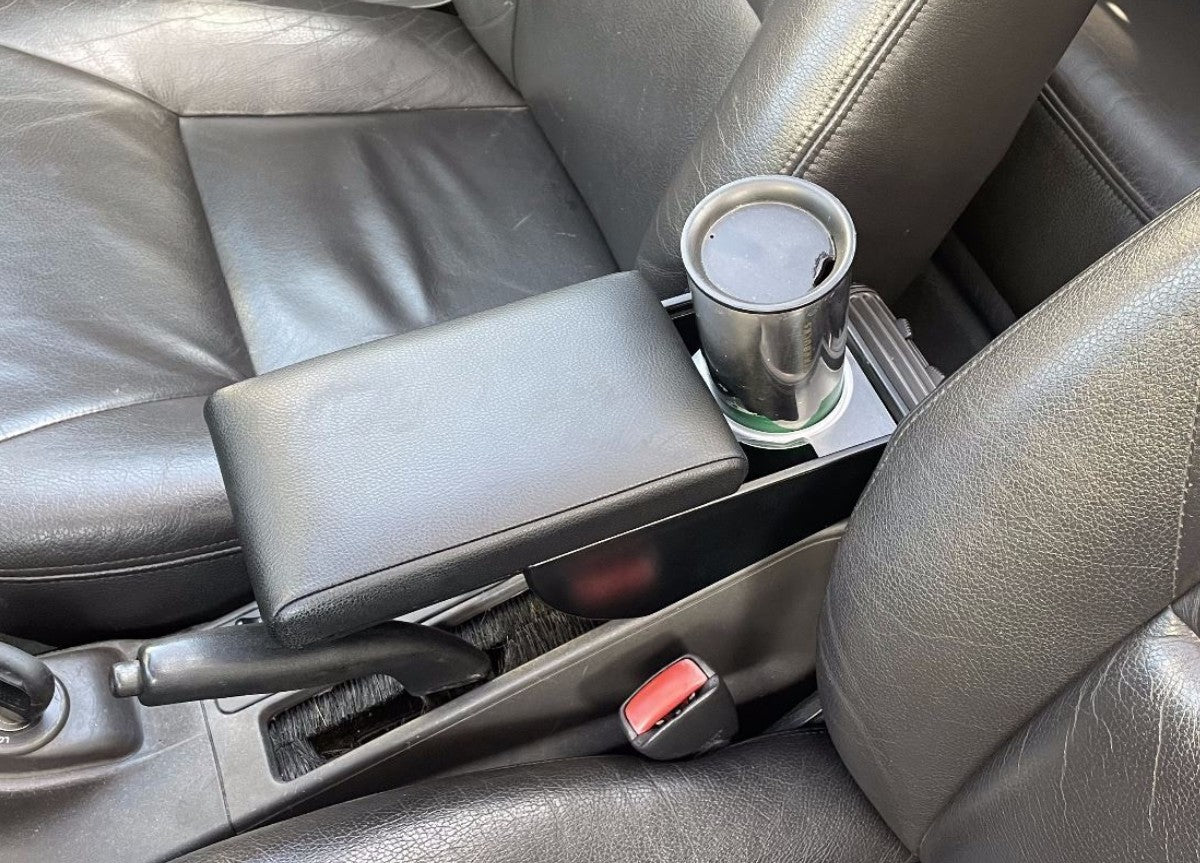 Bracciolo regolabile in lunghezza e ribaltabile per Saab 9.3 (1997-2003) e 900S-SE (1994-1998). Dotato di uno spazioso portaoggetti e di un morbido cuscino. Facendo scorrere in avanti il cuscino si accede al portaoggetti sottostante (vedi foto nella gallery). All’interno del portaoggetti è presente un comodo inserto portabicchiere.