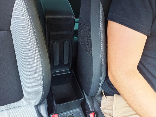 Bracciolo regolabile in lunghezza specifico per Skoda Fabia 3 (2014-2021) con installazione in “PUNTI ORIGINALI” (utilizzando punti di fissaggio già presenti sul tunnel centrale, evitando quindi di danneggiarlo praticando nuovi fori).