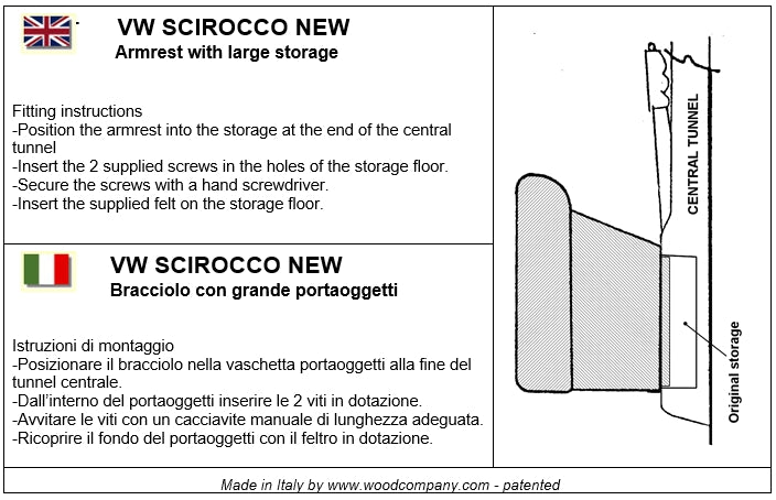 Bracciolo regolabile in lunghezza specifico perVolkswagen new Scirocco.