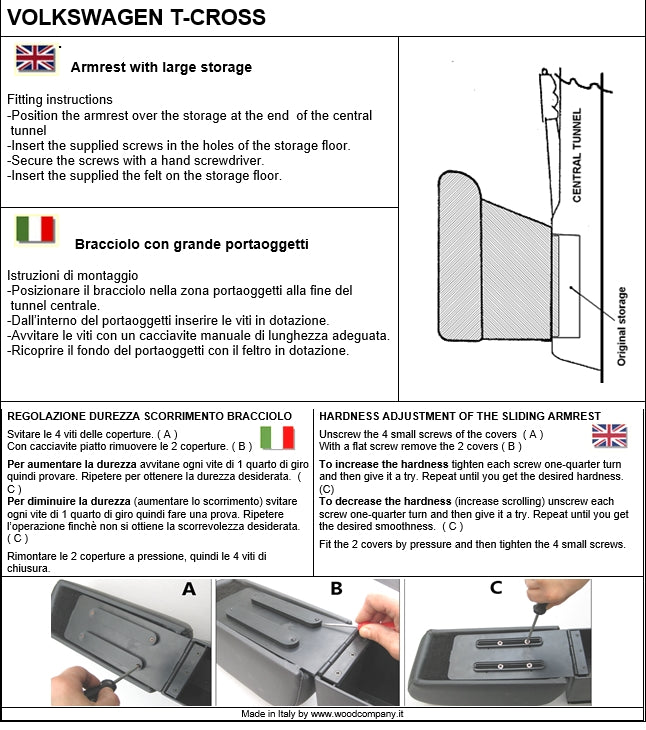 Prodotto progettato e realizzato espressamente per questo modello di auto, non si tratta di un bracciolo universale adattato. Realizzato interamente in Italia da esperti artigiani, utilizzando solamente materiali di alta qualità.