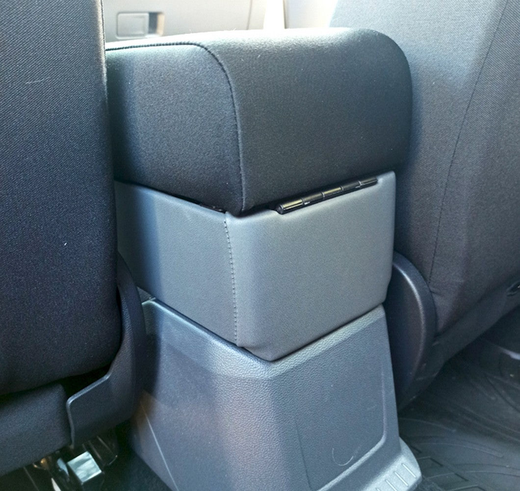Questo modello di bracciolo è dotato di una vasca portaoggetti completamente rivestita in ecopelle all'esterno e con morbido velluto nero all'interno. Il bracciolo risulta così perfettamente integrato con l'auto e con finiture di pregio.