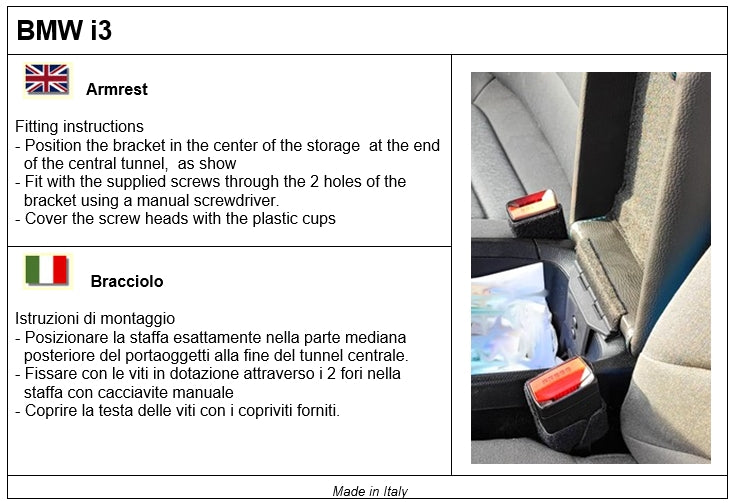 Prodotto progettato e realizzato espressamente per questo modello di auto, non si tratta di un bracciolo universale adattato. Realizzato interamente in Italia da esperti artigiani, utilizzando solamente materiali di alta qualità.