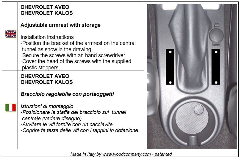 Bracciolo regolabile in lunghezza per Chevrolet Kalos (2002-2008). Dotato di uno spazioso portaoggetti e di un morbido cuscino. Facendo scorrere in avanti il cuscino si accede al portaoggetti sottostante (vedi foto nella gallery). All’interno del portaoggetti è presente un comodo inserto portabicchiere.