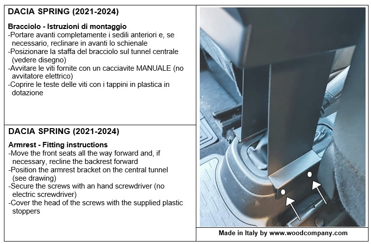 Prodotto progettato e realizzato espressamente per questo modello di auto, non si tratta di un bracciolo universale adattato. Realizzato interamente in Italia da esperti artigiani, utilizzando solamente materiali di alta qualità.