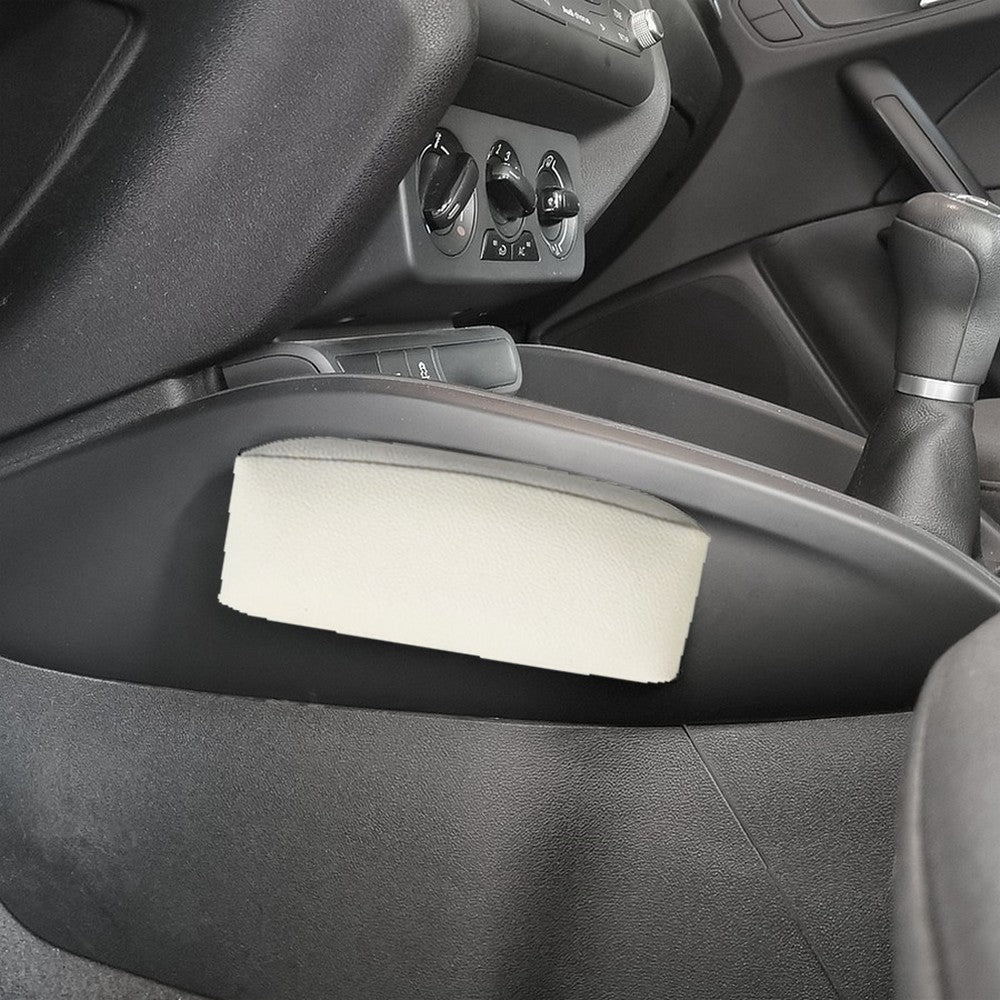 Piccolo cuscino da applicare sul fianco del tunnel centrale per avere un appoggio comodo e morbido per il ginocchio del guidatore e/o del passeggero. Universale, adatto a tutte le auto.