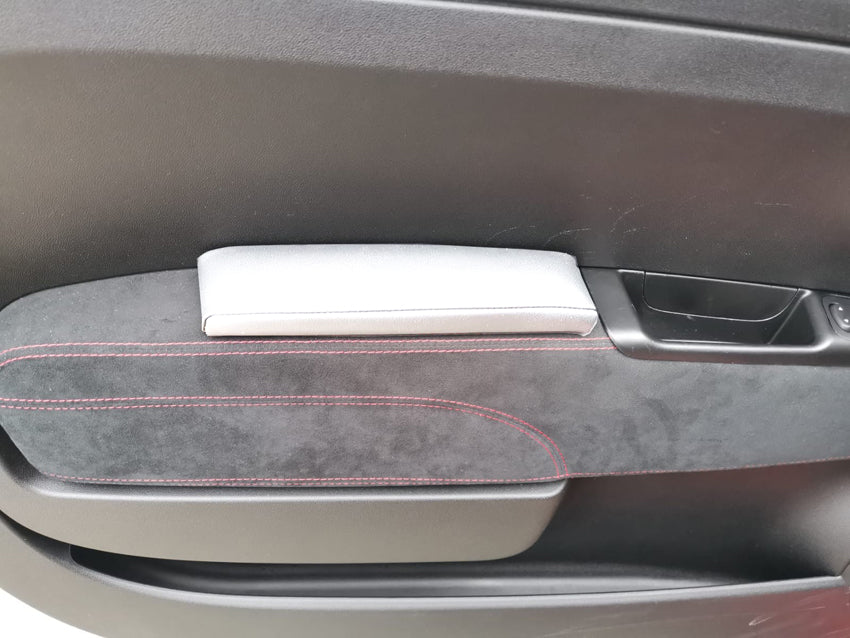 Piccolo cuscino da applicare sul profilo della portiera per avere un appoggio comodo e morbido per il gomito del guidatore e/o del passeggero. Specifico per Fiat 500 (versione post restyling 2015).