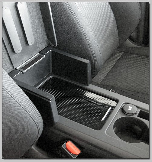 Il bracciolo si solleva (ribaltandosi all’indietro) permettendo l’accesso al portaoggetti originale presente sul tunnel centrale dell’auto.