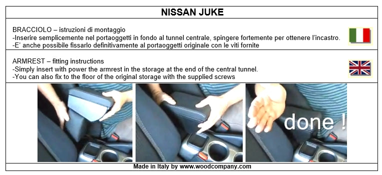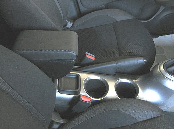 Bracciolo regolabile in lunghezza e ribaltabile per Nissan Juke (2010-2019) con installazione “PLUG-IN”, a pressione (sono fornite comunque 2 piccole viti nel caso si voglia un fissaggio meccanico). Bracciolo dotato di 2 ampi portaoggetti e di un morbido cuscino.