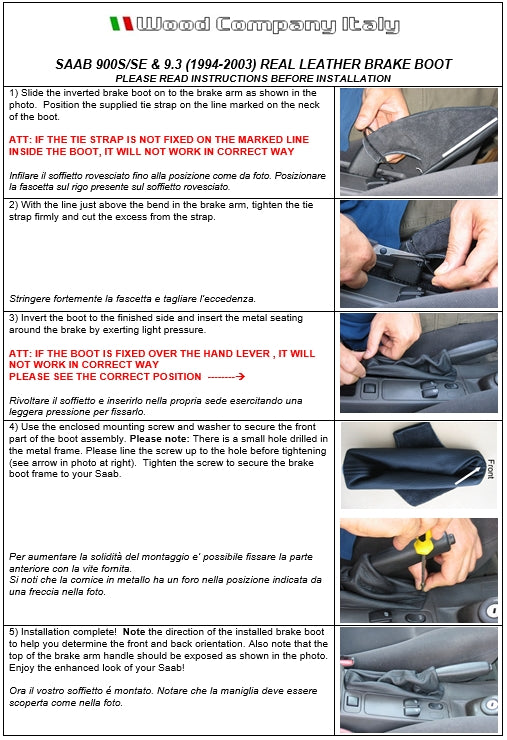 Soffietto per leva freno a mano in vera pelle per SAAB 9.3 (1998-2003) e SAAB 900S-SE (1994-1997)