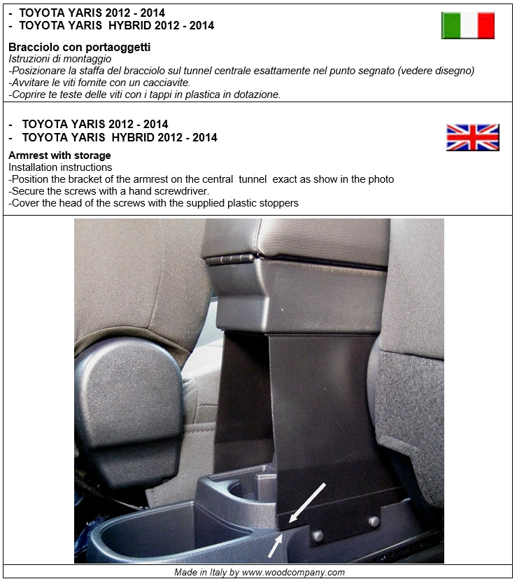 Bracciolo specifico per Toyota Yaris e Yaris Hybrid (2012-2014).